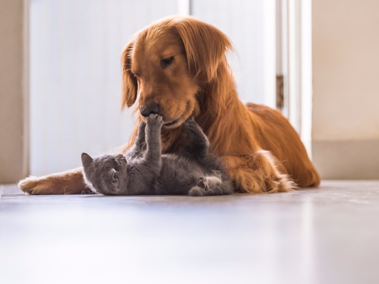 Gatos e cachorros ao se encontrarem podem apresentar diversas reações. Cães, quando avistam um novo integrante na casa, podem ficar curiosos. Dependendo do temperamento, o ideal é que ele chegue devagar para cheirar; do contrário, o gato, com uma reação instintiva; pode acertar uma unhada em seu focinho. Mesmo que haja sustos e curiosidades, a amizades entre cães e gatos pode ser construída posteriormente.